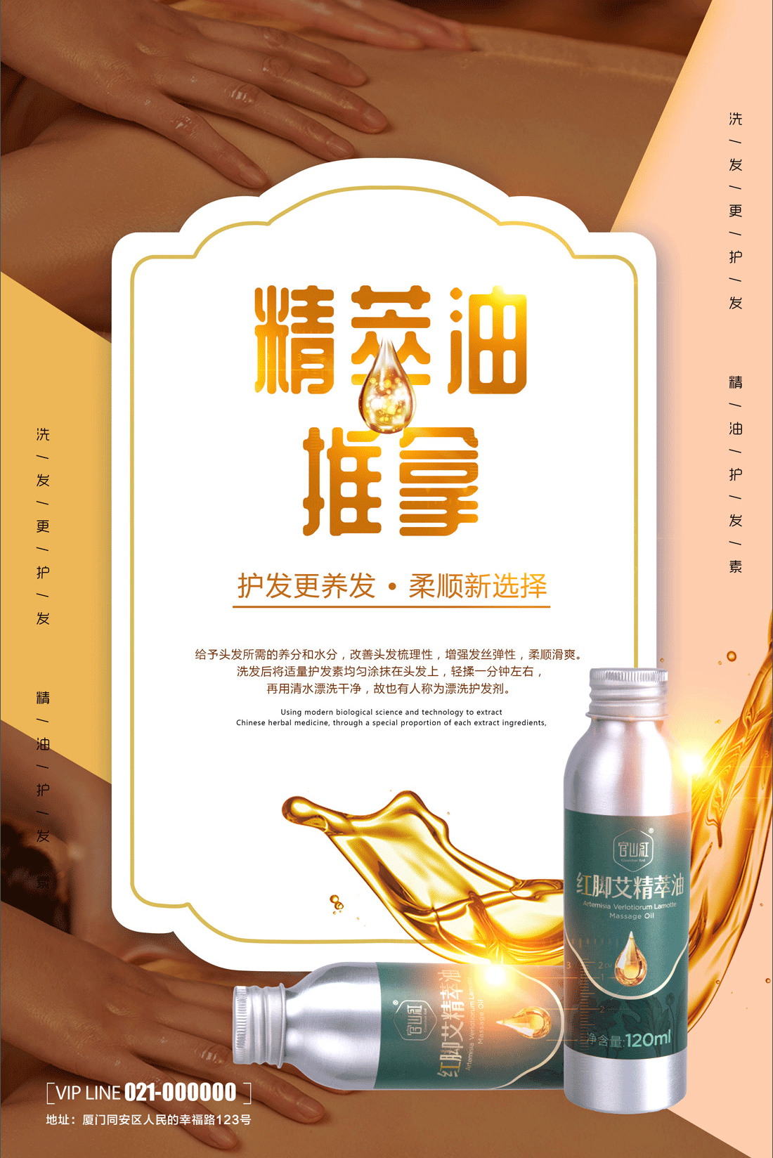 【使用方法】取按摩油适量滴在掌中,双手搓热按摩身体至吸收即可。